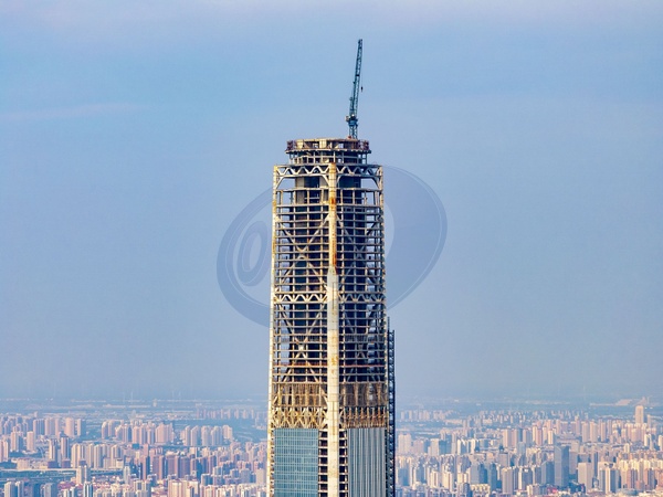 A view of the unfinished 597-meter-tall Goldin Finance 117 Tower in north China's Tianjin Municipality Wednesday, Aug. 28, 2024. The supertall made to the world's fifth place when it was topped out in 2015, but poor sales has failed its completion., Credit:FEATURECHINA / Avalon