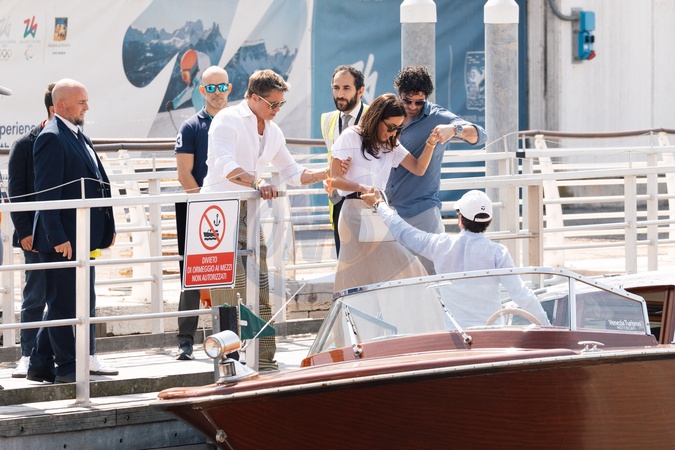 Brad Pitt i jego partnerka Ines de Ramon przybywają na 81. Międzynarodowy Festiwal Filmowy w Wenecji, La Mostra