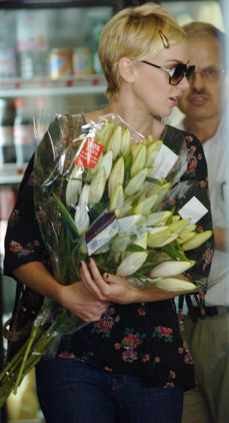 Kimberly Stewart z bukietem kwiatow, Londyn