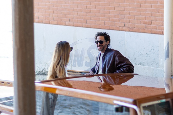 Adrien Brody i jego partnerka Georgina Chapman po przybyciu na lotnisko w Wenecji podczas 81. Międzynarodowego Festiwalu Filmowego w Wenecji, Mostra.