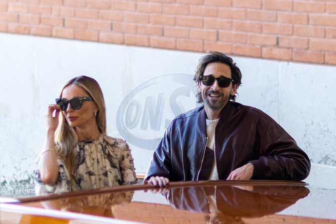 Adrien Brody i jego partnerka Georgina Chapman po przybyciu na lotnisko w Wenecji podczas 81. Międzynarodowego Festiwalu Filmowego w Wenecji, Mostra.
