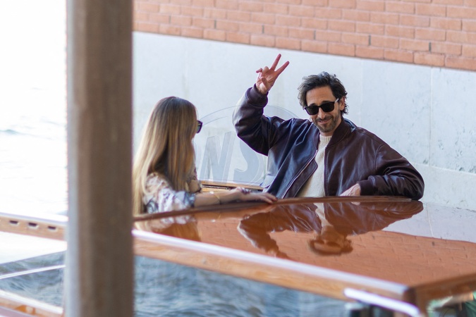 Adrien Brody i jego partnerka Georgina Chapman po przybyciu na lotnisko w Wenecji podczas 81. Międzynarodowego Festiwalu Filmowego w Wenecji, Mostra.