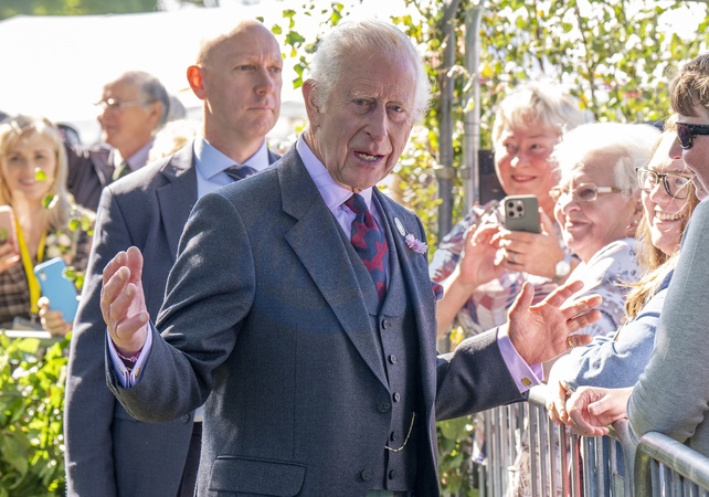 King Charles III meets members of the public during a visit to the Royal Horticultural Society of Aberdeen's 200th Flower Show at Duthie Park, Aberdeen. Picture date: Saturday August 31, 2024., Credit:Jane Barlow / Avalon