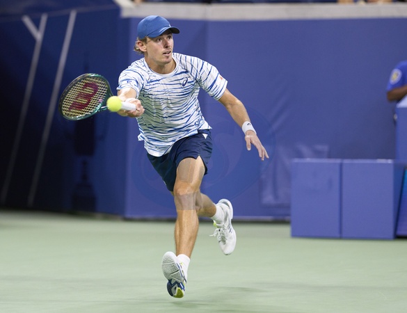 Alex De Minaur of Australia plays a forehand against Daniel Evans of Great Britain in their third round match on Armstrong Stadium at the 2024 US Open Tennis Championships at the National Tennis centre, New York, New York, 31 Aug 2024., Credit:Peter van den Berg / Avalon