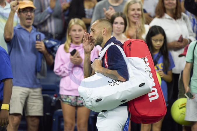 Daniel Evans of Great Britain leaves the court after losing to Alex De Minaur of Australia in the third round on Armstrong Stadium at the 2024 US Open Tennis Championships at the National Tennis centre, New York, New York, 31 Aug 2024., Credit:Peter van den Berg / Avalon