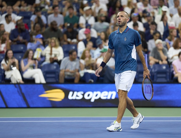 Daniel Evans of Great Britain looks down the court against Alex De Minaur of Australia in the third round on Armstrong Stadium at the 2024 US Open Tennis Championships at the National Tennis centre, New York, New York, 31 Aug 2024., Credit:Peter van den Berg / Avalon