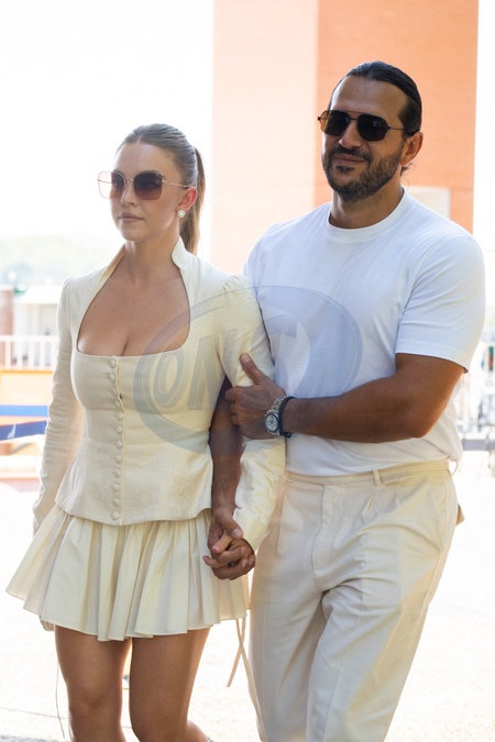 Sydney Sweeney et son fiancé Jonathan Davino à leur arrivée à l'aéroport de Venise. Le 1er septembre 2024 Sydney Sweeney and her fiancé Jonathan Davino arriving at the Venice airport. On September 1, 2024
