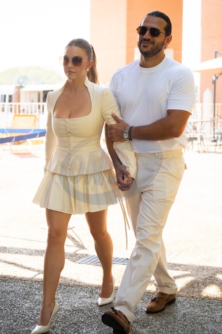 Sydney Sweeney et son fiancé Jonathan Davino à leur arrivée à l'aéroport de Venise. Le 1er septembre 2024 Sydney Sweeney and her fiancé Jonathan Davino arriving at the Venice airport. On September 1, 2024