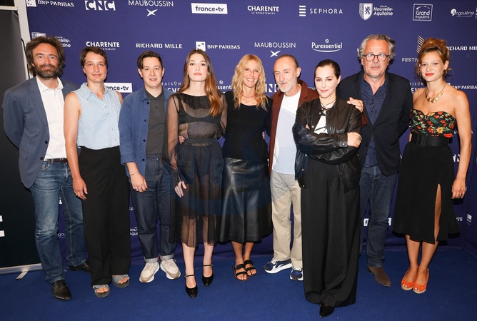 Guillaume Nicloux, Sandrine Kiberlain, Mathilde Ollivier, Amira Casar, Alix Blumberg, François Krauss et Denis Pineau-Valencienne - Cérémonie de remise de prix lors de la 17ème édition du Festival du Film Francophone de Angoulême (FFA) le 1er septembre 2024. © Coadic Guirec/Bestimage Awards ceremony at the 17th edition of the Angoulême Francophone Film Festival (FFA) on September 1, 2024.