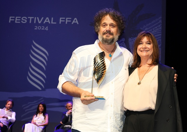 Mathias Mlekuz et Anne-Dominique Toussaint - Cérémonie de remise de prix lors de la 17ème édition du Festival du Film Francophone de Angoulême (FFA) le 1er septembre 2024. © Coadic Guirec/Bestimage Awards ceremony at the 17th edition of the Angoulême Francophone Film Festival (FFA) on September 1, 2024.