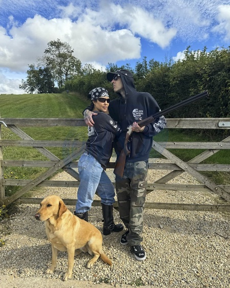 Screenshot of Kourtney Kardashian, latest post on social media, 31st August 2024.Quote:"POV: you live on a farm, adopt a dog together and shoot clay pigeons for sport.", Credit:B4859 / Avalon