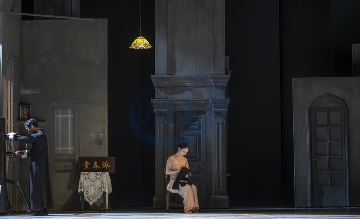 Sadlers Wells, London, UK. 29th August, 2024. Wing Chun - A fusion of contemporary dance, drama and martial arts tells the true story of Grandmaster Yip Man, trainer of Bruce Lee, choreographed by Han Zhen and Zhou Liya & written by Feng Shuangbai. Running from 30 Aug-7 Sept the spectacle tells the story of the 300-year-old martial art Wing Chun and the man who is credited with bringing it to the world, Grandmaster Yip Man, the man who trained Bruce Lee and founded The Ving Tsun Athletic Association. Image: Main character and his wife: Yip Man played by Chang Hongji, Yongcheng played by Xu Tianhui., Credit:MALCOLM PARK / Avalon