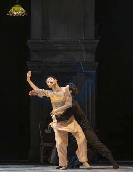 Sadlers Wells, London, UK. 29th August, 2024. Wing Chun - A fusion of contemporary dance, drama and martial arts tells the true story of Grandmaster Yip Man, trainer of Bruce Lee, choreographed by Han Zhen and Zhou Liya & written by Feng Shuangbai. Running from 30 Aug-7 Sept the spectacle tells the story of the 300-year-old martial art Wing Chun and the man who is credited with bringing it to the world, Grandmaster Yip Man, the man who trained Bruce Lee and founded The Ving Tsun Athletic Association. Image: Main character and his wife: Yip Man played by Chang Hongji, Yongcheng played by Xu Tianhui., Credit:MALCOLM PARK / Avalon