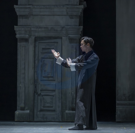 Sadlers Wells, London, UK. 29th August, 2024. Wing Chun - A fusion of contemporary dance, drama and martial arts tells the true story of Grandmaster Yip Man, trainer of Bruce Lee, choreographed by Han Zhen and Zhou Liya & written by Feng Shuangbai. Running from 30 Aug-7 Sept the spectacle tells the story of the 300-year-old martial art Wing Chun and the man who is credited with bringing it to the world, Grandmaster Yip Man, the man who trained Bruce Lee and founded The Ving Tsun Athletic Association. Image: Fight scene, Praying Mantis Master - He Junbo, Tai Chi Master - Zhang Zhenguo, Credit:MALCOLM PARK / Avalon