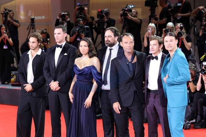 Italy, Lido di Venezia, August 31, 2024: Matias Garrido, Nicholas Hoult, Jurnee Smollett, director Justin Kurzel, Jude Law, Tye Sheridan and Philip Lewitski attend a red carpet for 'The Order' during the 81th Venice International Film Festival on August 31, 2024 in Venice, Italy., Credit:Ottavia Da Re/Sintesi / Avalon