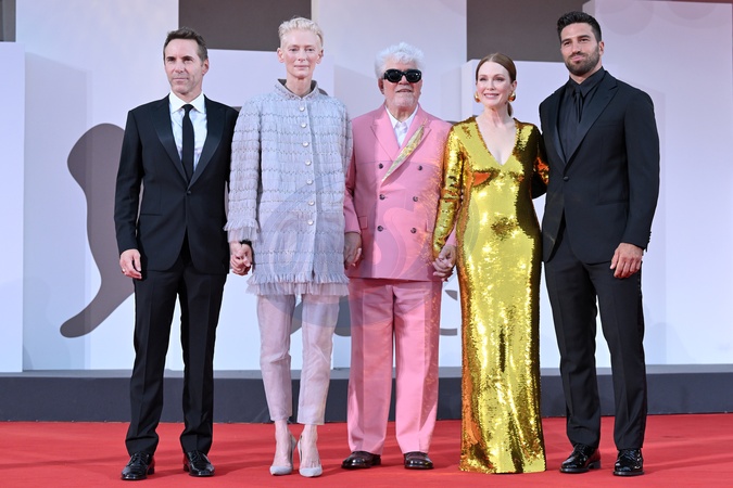 02/09/2024 Biennale di Venezia, 81 Mostra Internazionale d' Arte Cinematografica, red carpet del film The Room next door. Nella foto Alessandro Nivola, Tilda Swinton, Pedro Almodovar, Julianne Moore, Alvise Rigo, Credit:Maria Laura Antonelli / Avalon