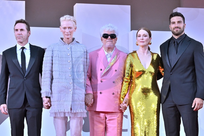 02/09/2024 Biennale di Venezia, 81 Mostra Internazionale d' Arte Cinematografica, red carpet del film The Room next door. Nella foto Alessandro Nivola, Tilda Swinton, Pedro Almodovar, Julianne Moore, Alvise Rigo, Credit:Maria Laura Antonelli / Avalon
