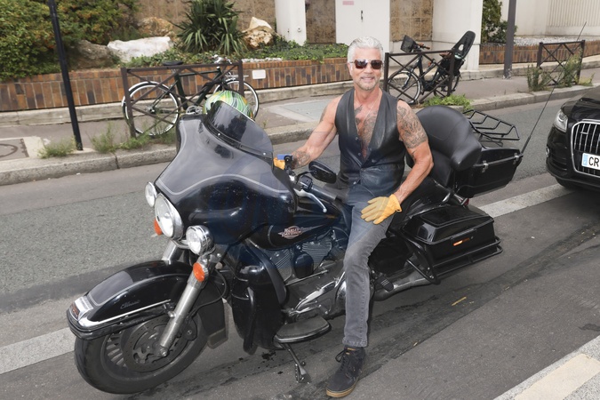 Exclusif - Cyril Hanouna, Lorenzo Lamas («Le Rebelle») est le chauffeur moto de Cyril Hanouna pour se rendre de la station de Radio Europe 1 au plateau de de l'émission «TPMP» présentée par C.Hanouna et diffusée en direct sur C8, Paris, France, le 02 septembre 2024. © Jack Tribeca / Bestimage Exclusive - For Germany call for price - Lorenzo Lamas from the series "Le Rebelle" is Cyril Hanouna's motorcycle driver to get from the Europe 1 Radio station to the set of the show "TPMP" presented by C.Hanouna and broadcast live on C8, Paris, France, on September 2, 2024.