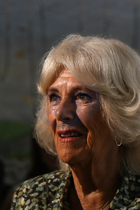 Britain's Queen Camilla reacts as she meets with members of staff upon her arrival for a visit at the Dyson Cancer Centre, part of the Royal United Hospitals Bath NHS Foundation Trust, in Bath, western England, on September 3, 2024. The new Dyson Cancer Centre brings together the majority of the Royal United Hospital's cancer services, including a research hub, chemotherapy and radiotherapy services, a 22-bed in-patient ward, a dedicated pharmacy and nuclear medicine and physics teams., Credit:JUSTIN TALLIS / Avalon