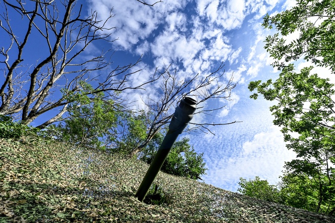 DONETSK REGION, UKRAINE - AUGUST 13, 2024 - Camouflage netting covers a self-propelled artillery vehicle at the position of the 55th Zaporizhzhian Sich Artillery Brigade in the Pokrovsk direction, Donetsk region, eastern Ukraine., Credit:Dmytro Smolienko / Avalon