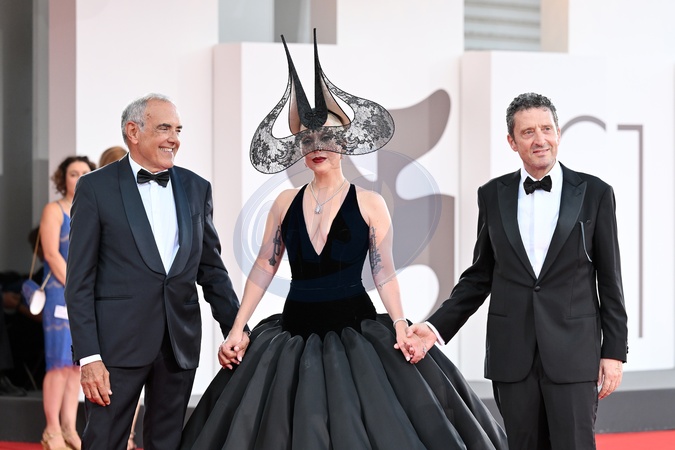 Alberto Barbera, Lady Gaga, Pietrangelo Buttafuoco during 'Joker folie a deux' red Carpet - The 81st Venice International Film Festival, Venice, Italy 04 Sept 2024, Credit:Maria Laura Antonelli / Avalon