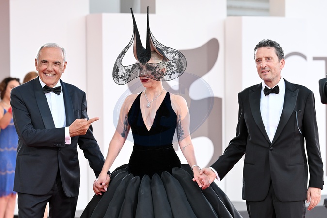 Alberto Barbera, Lady Gaga, Pietrangelo Buttafuoco during 'Joker folie a deux' red Carpet - The 81st Venice International Film Festival, Venice, Italy 04 Sept 2024, Credit:Maria Laura Antonelli / Avalon