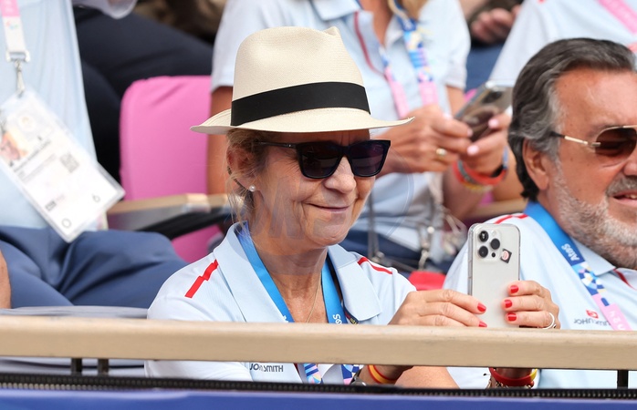 L'infante Elena d'Espagne assiste à la rencontre de tennis fauteuil entre Stéphane Houdet (FR) et Martín de la Puente (ESP) lors des jeux paralympiques Paris 2024