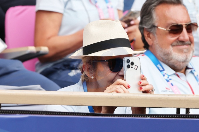 Infantka Elena z Hiszpanii uczestniczy w meczu tenisa na wózkach inwalidzkich pomiędzy Stéphane Houdet (FR) i Martín de la Puente (ESP) podczas Igrzysk Paraolimpijskich w Paryżu w 2024 r.