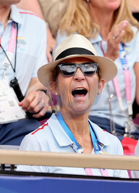 L'infante Elena d'Espagne assiste à la rencontre de tennis fauteuil entre Stéphane Houdet (FR) et Martín de la Puente (ESP) lors des jeux paralympiques Paris 2024