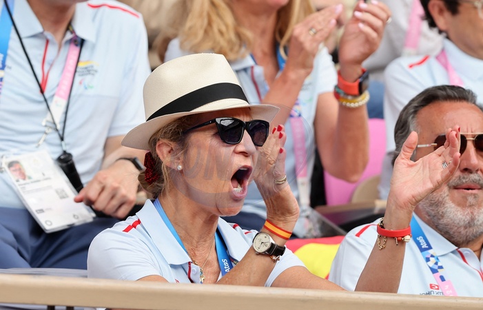 L'infante Elena d'Espagne assiste à la rencontre de tennis fauteuil entre Stéphane Houdet (FR) et Martín de la Puente (ESP) lors des jeux paralympiques Paris 2024