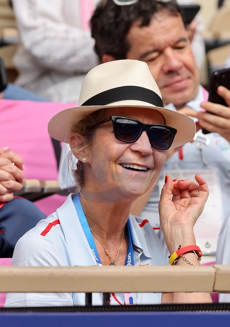 L'infante Elena d'Espagne assiste à la rencontre de tennis fauteuil entre Stéphane Houdet (FR) et Martín de la Puente (ESP) lors des jeux paralympiques Paris 2024
