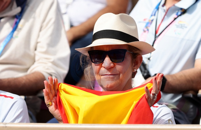 L'infante Elena d'Espagne assiste à la rencontre de tennis fauteuil entre Stéphane Houdet (FR) et Martín de la Puente (ESP) lors des jeux paralympiques Paris 2024