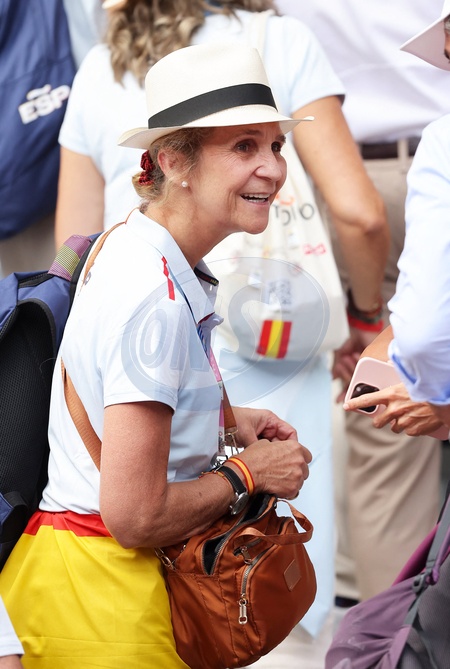 L'infante Elena d'Espagne assiste à la rencontre de tennis fauteuil entre Stéphane Houdet (FR) et Martín de la Puente (ESP) lors des jeux paralympiques Paris 2024