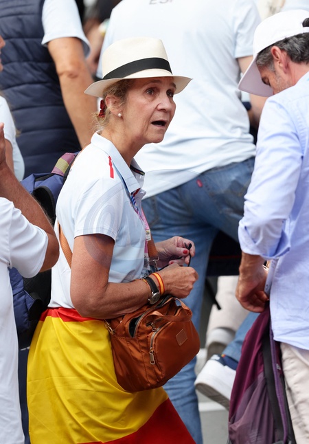 L'infante Elena d'Espagne assiste à la rencontre de tennis fauteuil entre Stéphane Houdet (FR) et Martín de la Puente (ESP) lors des jeux paralympiques Paris 2024
