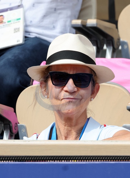 L'infante Elena d'Espagne assiste à la rencontre de tennis fauteuil entre Stéphane Houdet (FR) et Martín de la Puente (ESP) lors des jeux paralympiques Paris 2024