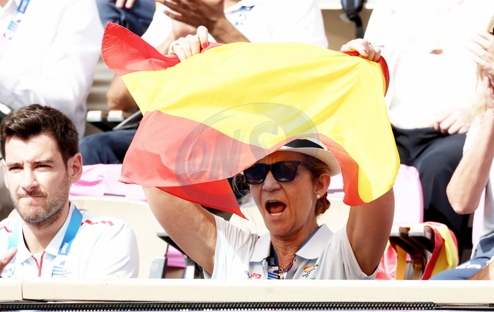 L'infante Elena d'Espagne assiste à la rencontre de tennis fauteuil entre Stéphane Houdet (FR) et Martín de la Puente (ESP) lors des jeux paralympiques Paris 2024