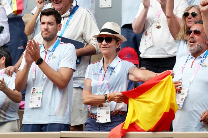 L'infante Elena d'Espagne assiste à la rencontre de tennis fauteuil entre Stéphane Houdet (FR) et Martín de la Puente (ESP) lors des jeux paralympiques Paris 2024