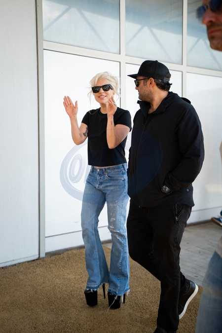 Lady Gaga et son fiancé Michael Polansky à l'aéroport Marco Polo de Venise après avoir assisté au 81ème festival international du film de Venise, la Mostra