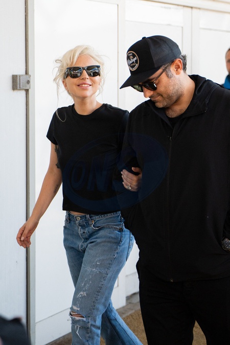 Lady Gaga et son fiancé Michael Polansky à l'aéroport Marco Polo de Venise après avoir assisté au 81ème festival international du film de Venise, la Mostra