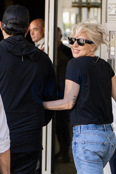 Lady Gaga et son fiancé Michael Polansky à l'aéroport Marco Polo de Venise après avoir assisté au 81ème festival international du film de Venise, la Mostra