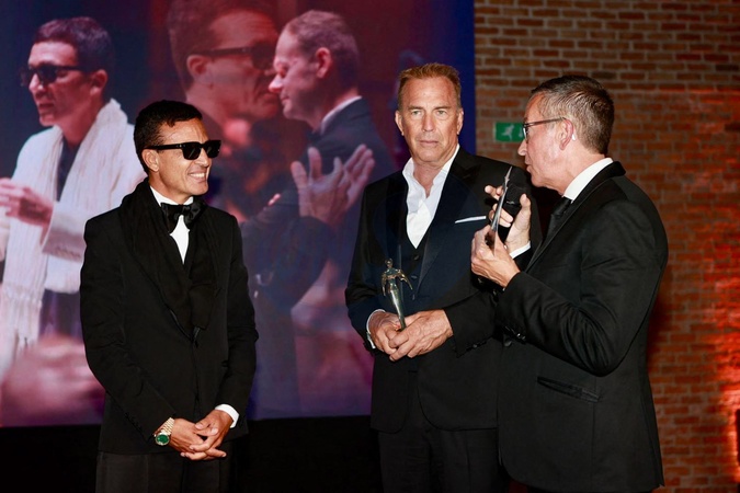Omar Harfouch reçoit de l’acteur Kevin Costner le prix de : Best achievement for peace Award, en marge du 81ème festival international du film de Venise, la Mostra