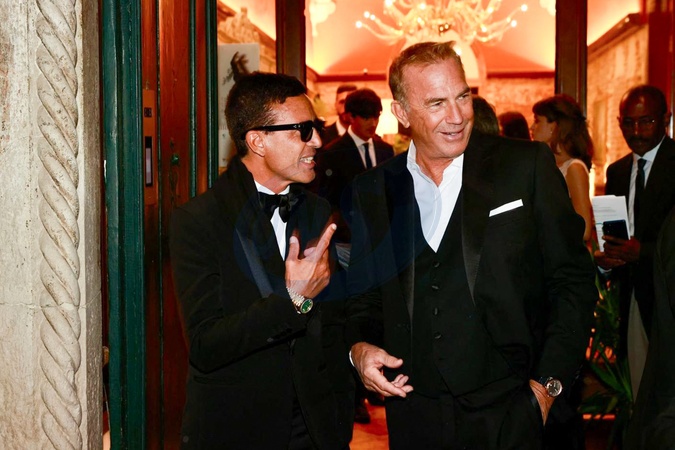 Omar Harfouch reçoit de l’acteur Kevin Costner le prix de : Best achievement for peace Award, en marge du 81ème festival international du film de Venise, la Mostra