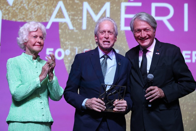 Michael Douglas, Anne d'Ornano et Philippe Augier le Maire de Deauville lors de la soirée d'ouverture de la 50eme édition du Festival du Cinema Américain de Deauville, France, le 6 Septembre 2024. © Denis Guignebourg/BestImage Celebs during the 50th Deauville American Film Festival opening ceremony on September 6, 2024 in Deauville, France.