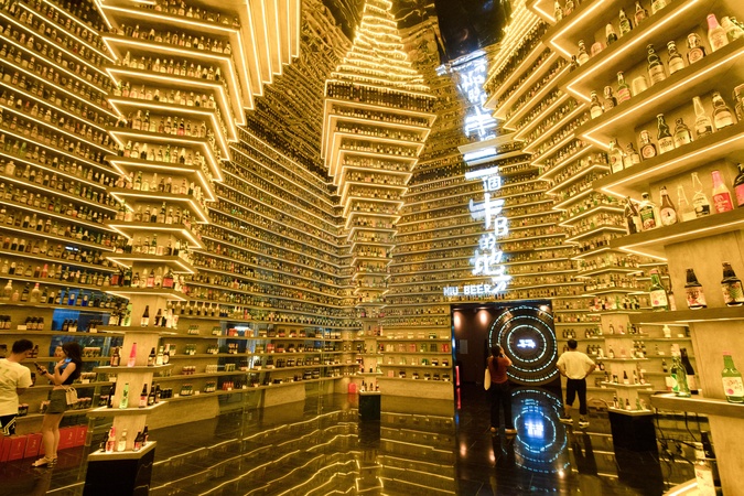 The interior view of a bar named NiuBeer Museum of World Craft Beers in Nanjing city in east China's Jiangsu province Sunday, Sept. 01, 2024. The bar showcases over 1,000 different craft beers collected from around the globe. Niu Bee is a F-word in Chinese meaning awesome., Credit:FEATURECHINA / Avalon