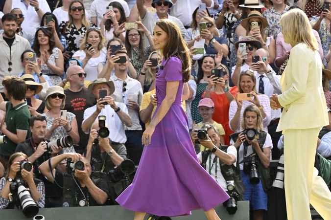 Info - Kate Middleton annonce avoir terminé son traitement de chimiothérapie - Catherine (Kate) Middleton remet la coupe à Carlos Alcaraz après sa victoire face à Novak Djokovic en finale du tournoi de Wimbledon 2024 (6/2 - 6/2 - 7/6). Wimbledon, le 14 juillet 2024. Catherine (Kate) Middleton presents the cup to Carlos Alcaraz after his victory against Novak Djokovic in the final of the 2024 Wimbledon tournament (6/2 - 6/2 - 7/6). Wimbledon, July 14, 2024. Tennis : Wimbledon 2024 - Kate Middleton Remise du trophy sur le court central