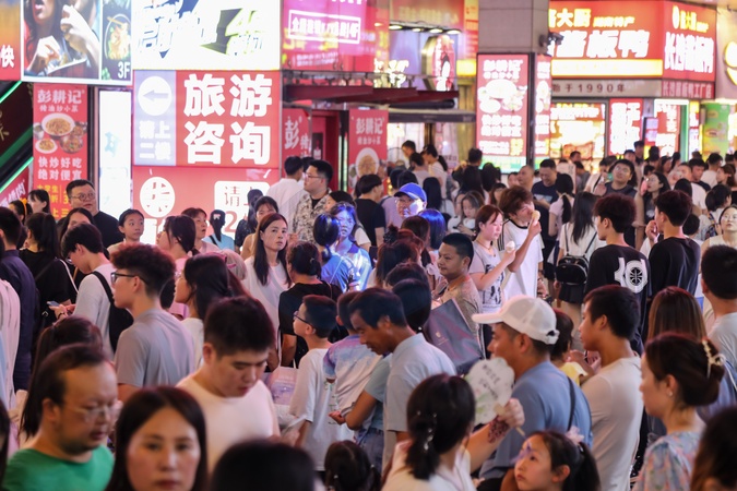 Tourists fill a pedestrian street in Changsha in south China's Hunan province Sunday, Aug. 25, 2024., Credit:FEATURECHINA / Avalon