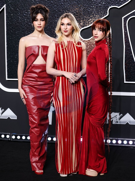 ELMONT, NEW YORK, USA - SEPTEMBER 11: Alejandra Villarreal Velez, Daniela Villarreal Velez and Paulina Villarreal Velez of The Warning arrive at the 2024 MTV Video Music Awards held at UBS Arena on September 11, 2024 in Elmont, New York, United States., Credit:Xavier Collin / Avalon