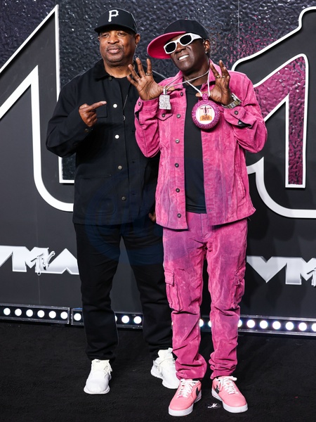 ELMONT, NEW YORK, USA - SEPTEMBER 11: Chuck D and Flavor Flav of Public Enemy arrive at the 2024 MTV Video Music Awards held at UBS Arena on September 11, 2024 in Elmont, New York, United States., Credit:Xavier Collin / Avalon