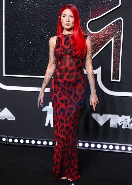 ELMONT, NEW YORK, USA - SEPTEMBER 11: Halsey wearing vintage Versace arrives at the 2024 MTV Video Music Awards held at UBS Arena on September 11, 2024 in Elmont, New York, United States., Credit:Xavier Collin / Avalon