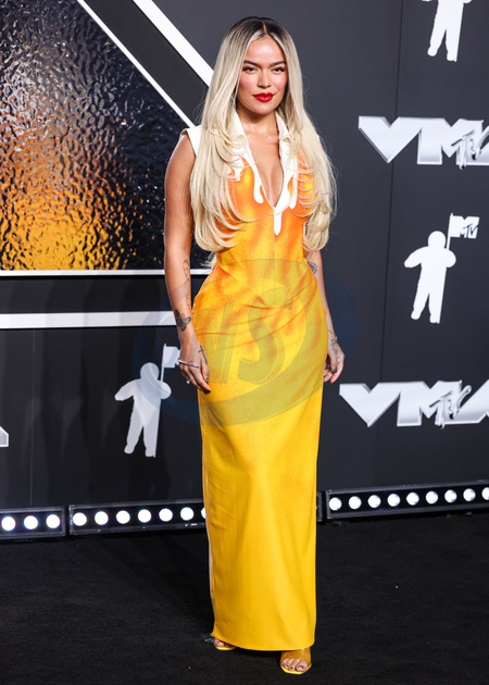 ELMONT, NEW YORK, USA - SEPTEMBER 11: Karol G arrives at the 2024 MTV Video Music Awards held at UBS Arena on September 11, 2024 in Elmont, New York, United States., Credit:Xavier Collin / Avalon